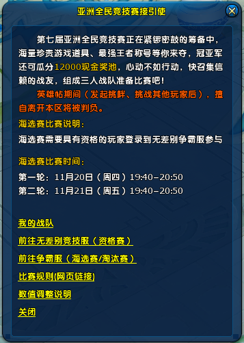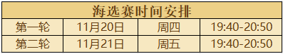 注:海选赛时间如下,请已晋级的玩家在比赛开始前20分钟(即19:20)登录【无差别争霸服】进行赛前准备。