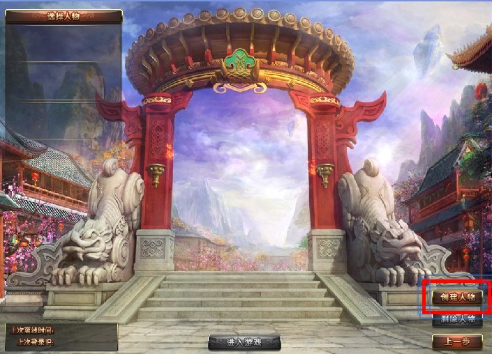 1、输入帐号密码进入游戏后,在新出来的界面的右下角点击“创建角色”按钮,进入角色创建界面。