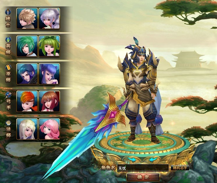 5、选好职业,取好您的游戏角色名字后,点击“确定”,完成角色的创建。